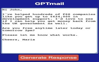 mailGPT هو إضافة لـ Chrome تم تطويرها بواسطة giacomopesso بهدف تقليل الضغط المرتبط بالرد على رسائل البريد الإلكتروني من خلال توفير استجابات سريعة تم إنشاؤها بواسطة الذكاء الاصطناعي. باستخدام هذه الأداة ، يمكن للمستخدمين ببساطة لصق البريد الإلكتروني الذي يقومون بالرد عليه ، وسيقوم mailGPT بتوليد رد رائع لهم.